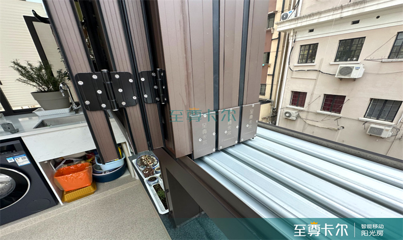 传统的阳光房只是一个固定的空间,虽然也可以用来储物或当作休闲空间,但总感觉被束缚着,无法更亲近自然。而移动阳光房在内置隐藏式电机传动系统的作用下,可以实现智能开合,在一开一合之间实现室内外空间的自由转换。完全闭合时,能够起到遮风挡雨、安全防盗的作用。而折叠打开时,又会恢复为一个露天的空间,既增强了通风效果;又因为折叠时只占用了很小的面积而能够最大程度上避免违建。