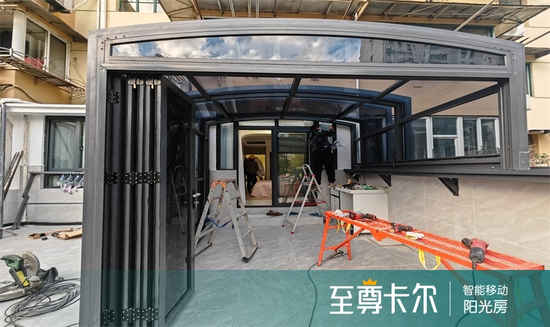 如果有预算,需求高,选用安全玻璃搭建,而遮阳板可以做到玻璃夹层中,永久省去清洗的麻烦!定制伸缩阳光房,联系至尊卡尔阳光房,23年品牌厂家,全国连锁直营,免费上门测量设计。